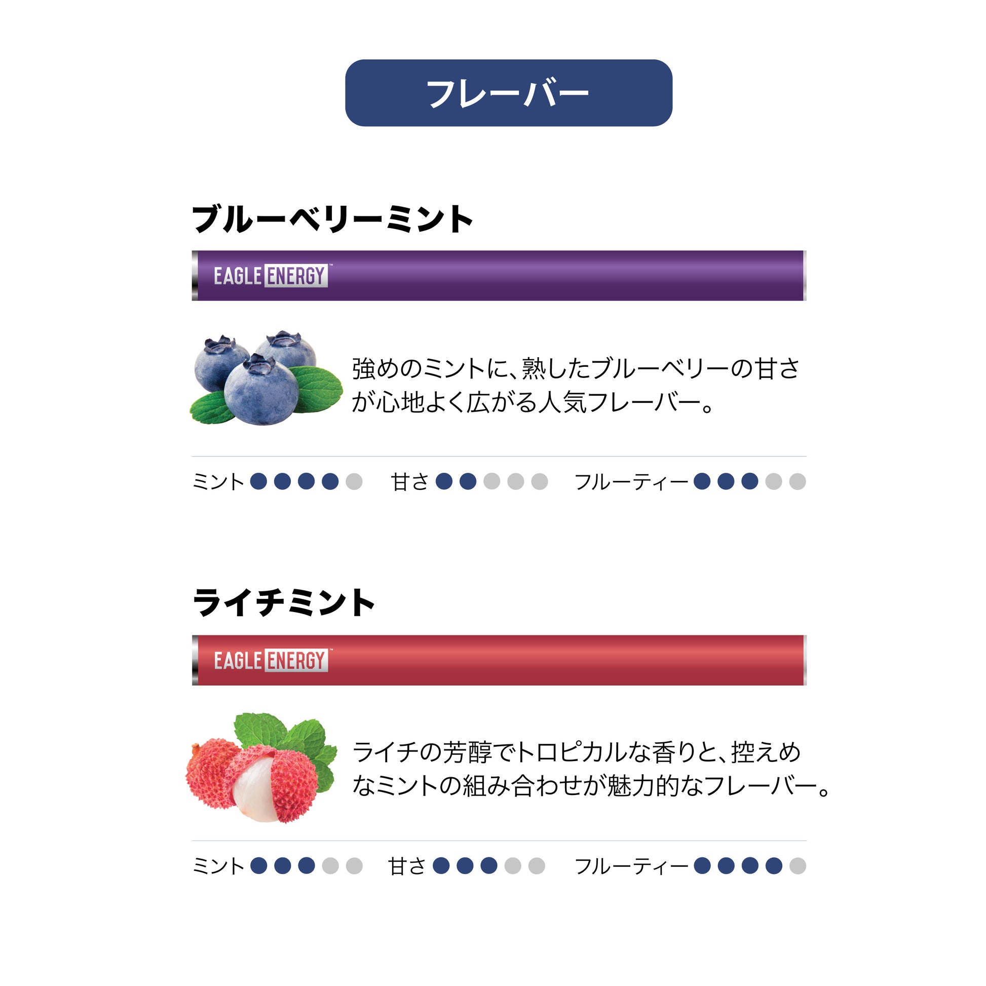 人気のフルーツミントフレーバー、ブルーベリーミント&ライチミントのお試しセットです。